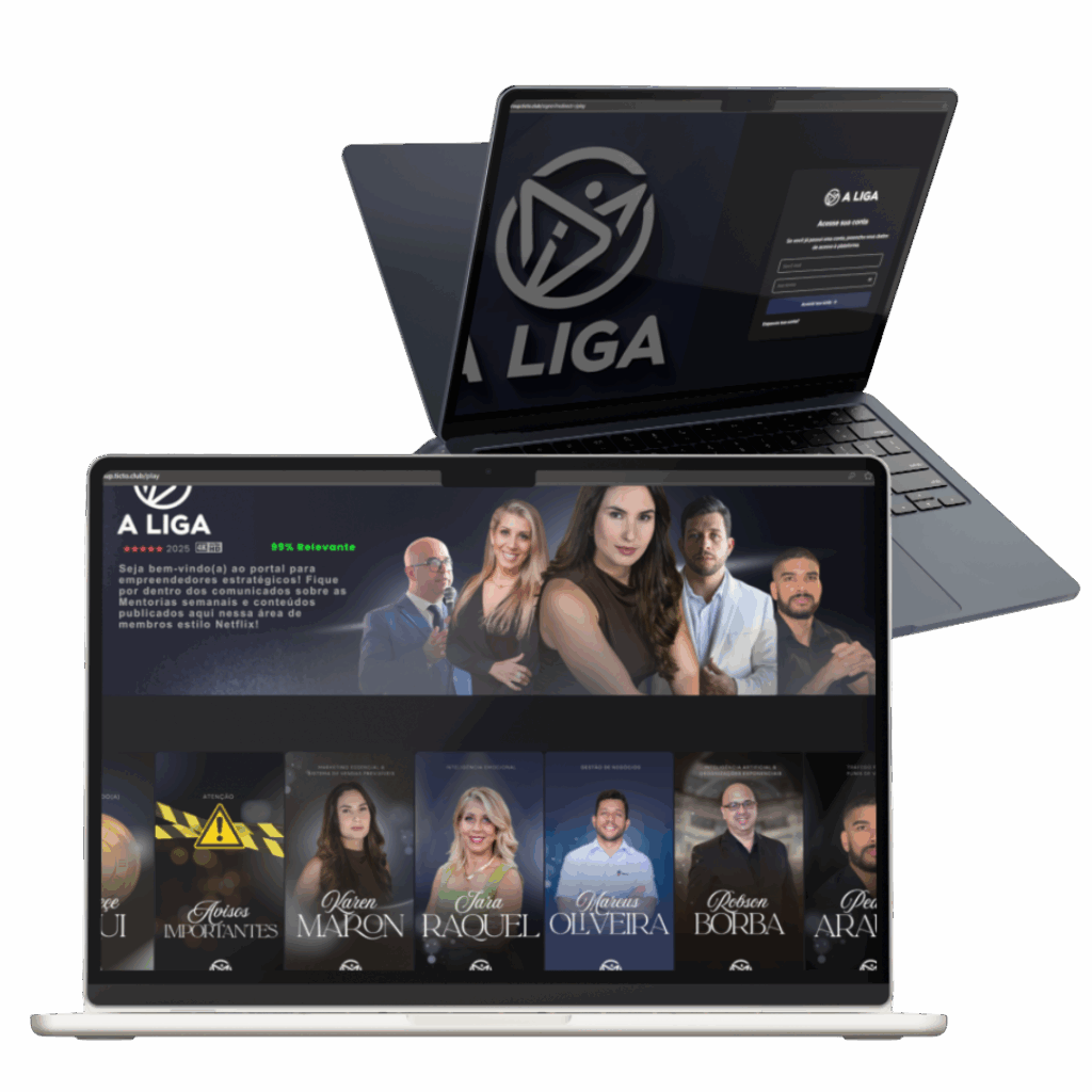 Na área de membros da Liga, você terá acesso a todos os conteúdos organizados de forma simples e intuitiva, como em uma plataforma de streaming. A qualquer hora, de qualquer lugar, você pode assistir às aulas, rever encontros, acessar materiais exclusivos e acompanhar seu progresso, tudo em um ambiente pensado para facilitar seu aprendizado e acelerar seus resultados.
